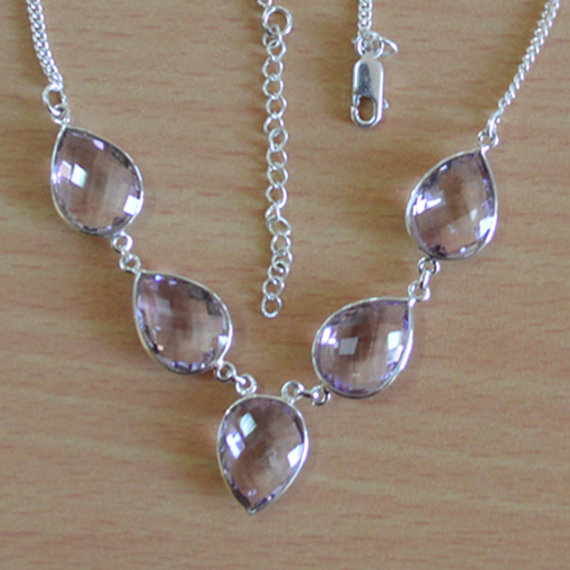 Amethyst Necklace - Genuine Gemstone Necklace - 925 Sterling Silver Necklace - Amethyst faceted Pear Shape - light Purple Necklace