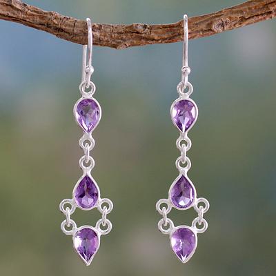 Amethyst and Sterling Silver Indian Earrings, 'Mystic Wonder'