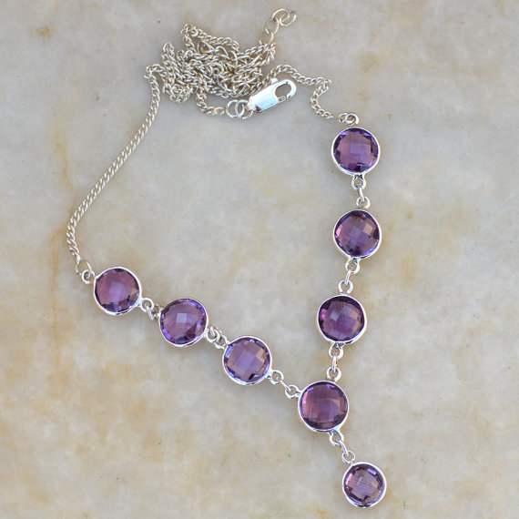 925 Sterling Silver NecklaceAmethyst Purple Necklace 18 inch Necklace,February Amethyst Jewelry