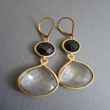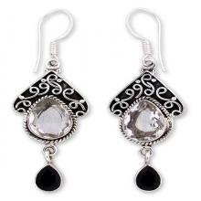 Quartz and Onyx Silver Dangle
