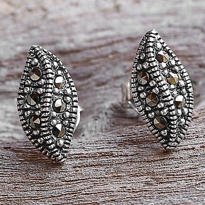 Sterling Silver and Marcasite Stud Leaf Earrings